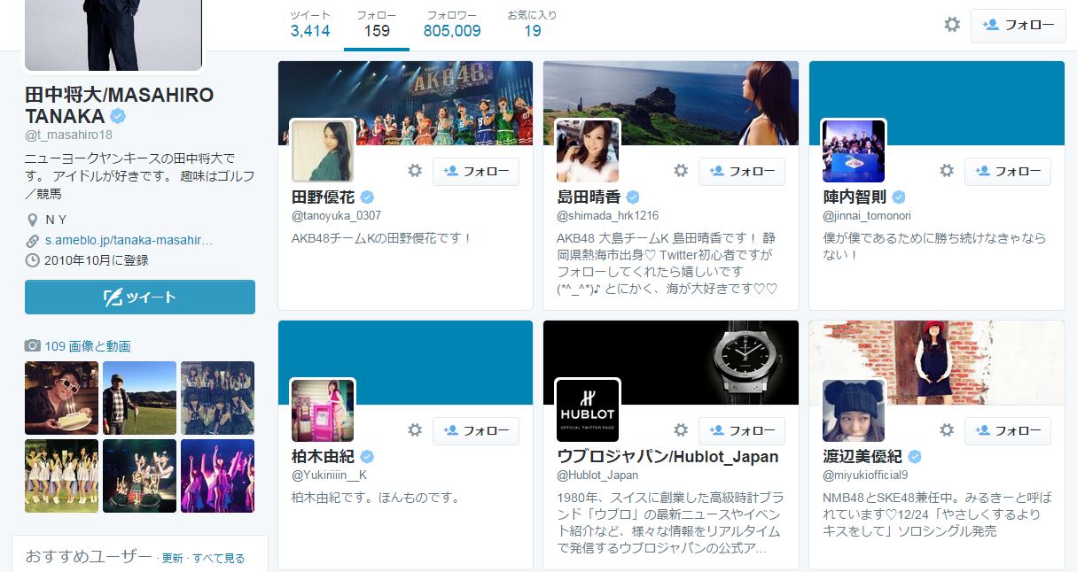 Twitterひらいてびっくり。田中将大選手がフォローしてくださってる🙊うれしい!笑