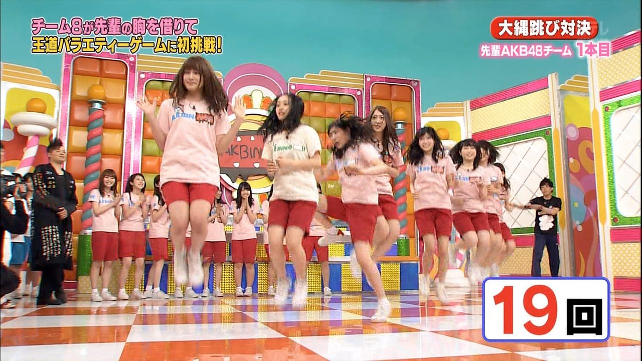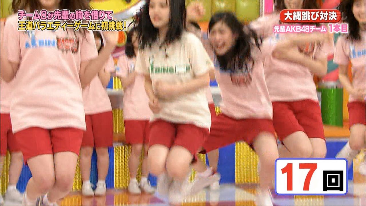 AKBINGOの大縄跳び対決で胸を押さえて跳んでいた茂木ちゃん
