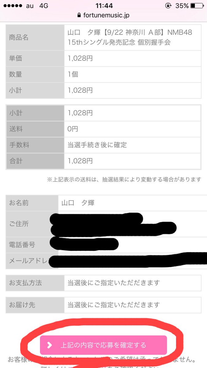 私の握手券を買うには、「応募サイト」を押します。