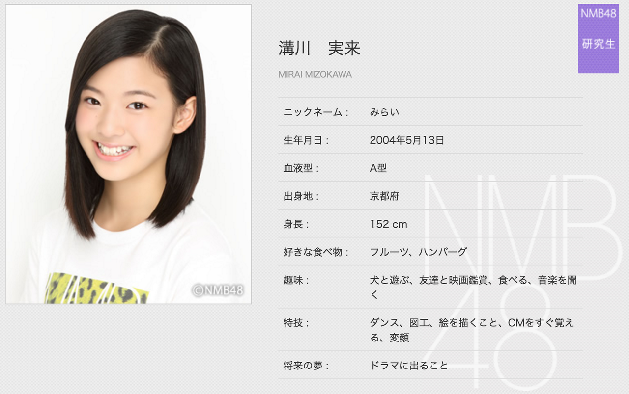 溝川実来(みぞかわ・みらい)2004年5月13日生まれ、京都府出身、小学6年生、12歳、A型、みらい