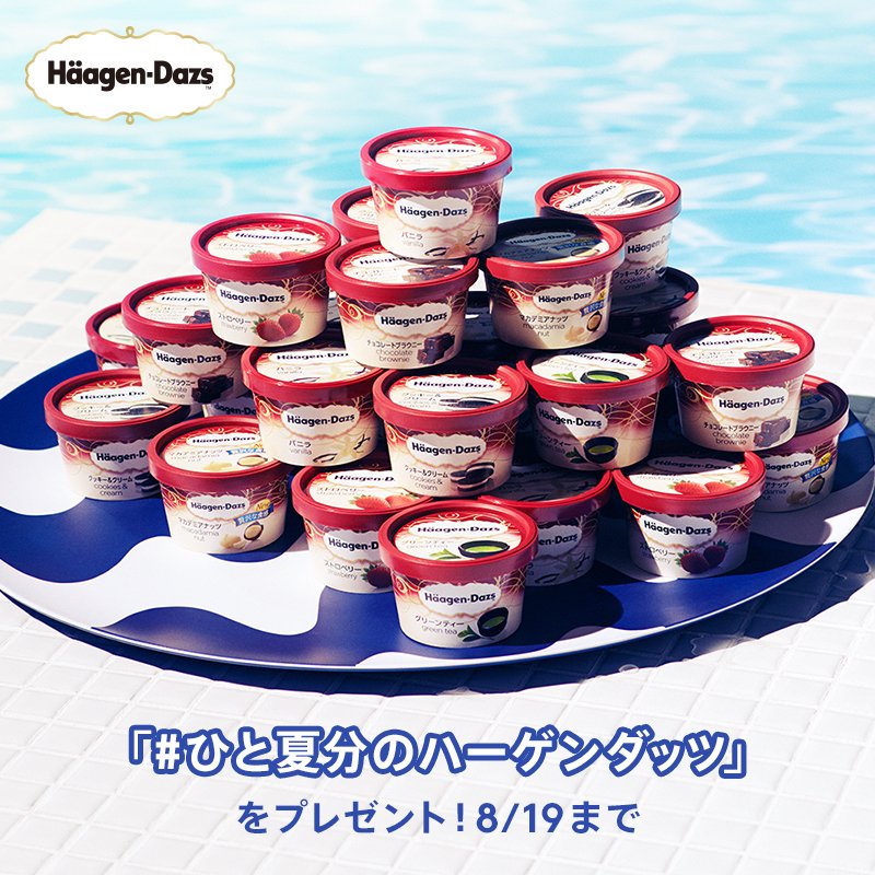 TwitterまたはInstagramで「#ひと夏分のハーゲンダッツ」を付けて投稿すると、毎日1名様にミニカップ30個(ひと夏分)があたるキャンペーンを実施中。是非ご参加下さい♪