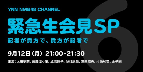 9/12(月)21:00より生配信!「NMB48 緊急生会見 ~記者が貴方で、貴方が記者で~」