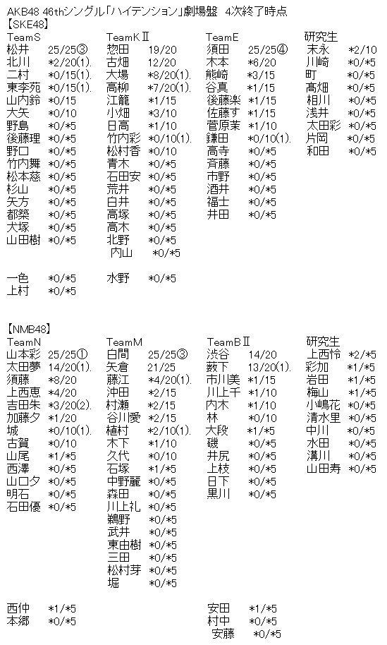 AKB48 46thシングル「ハイテンション」劇場盤 4次終了時点