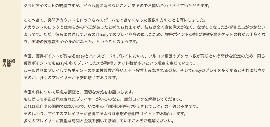 運営を一方的に悪く言うのはよくないこと、それはわかってます。でもあえて言いたい。
