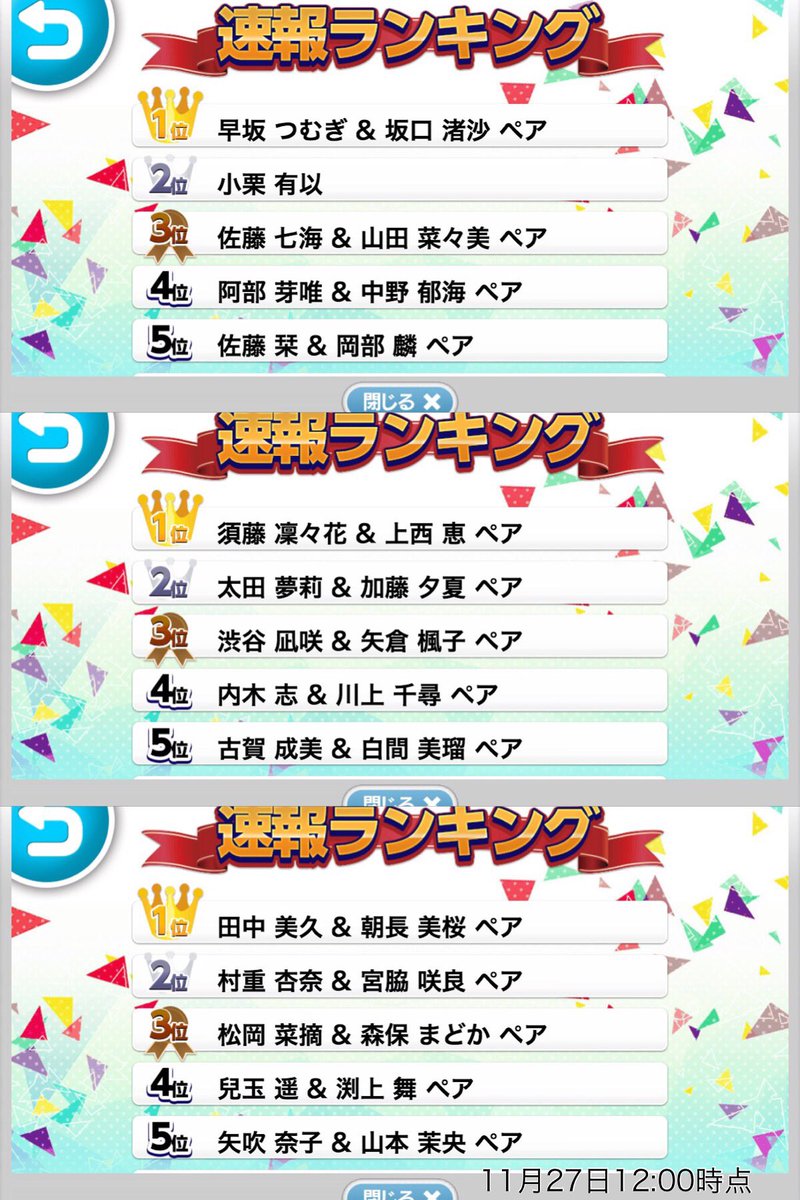 11/27 12:00時点の応援ランキングだよ✌