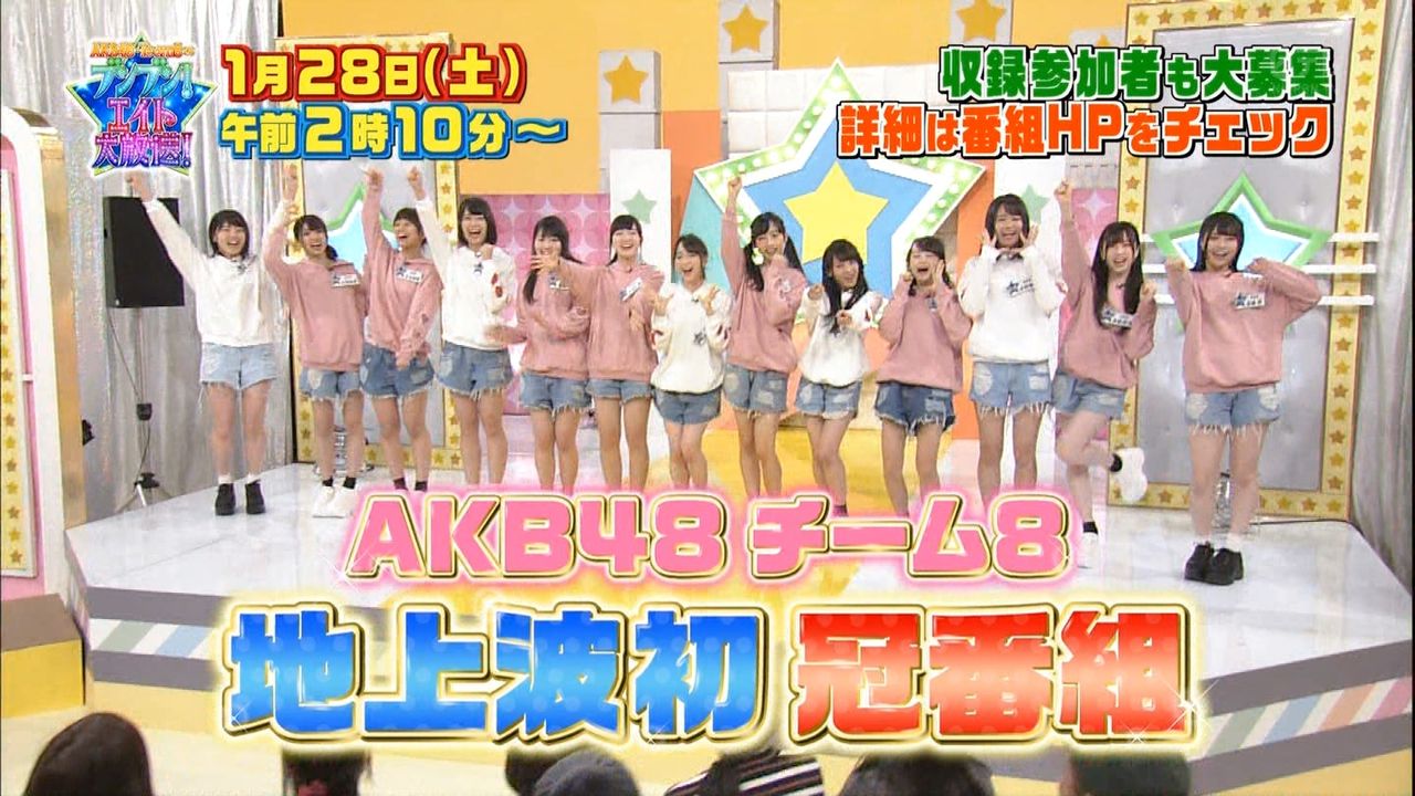 1月27日(金)26:10から日本テレビでスタートするAKB48チーム8初の地上波冠番組「AKB チーム8の ブンブン!エイト大放送」の、SHOWROOM同時視聴企画が決定しました!