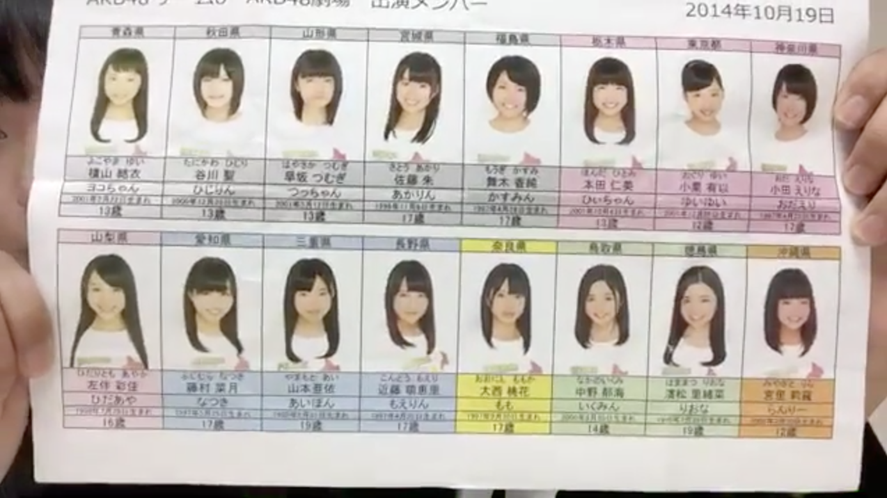 わかります?メンバー表。中野郁海さんセンターで、みんな幼い。
