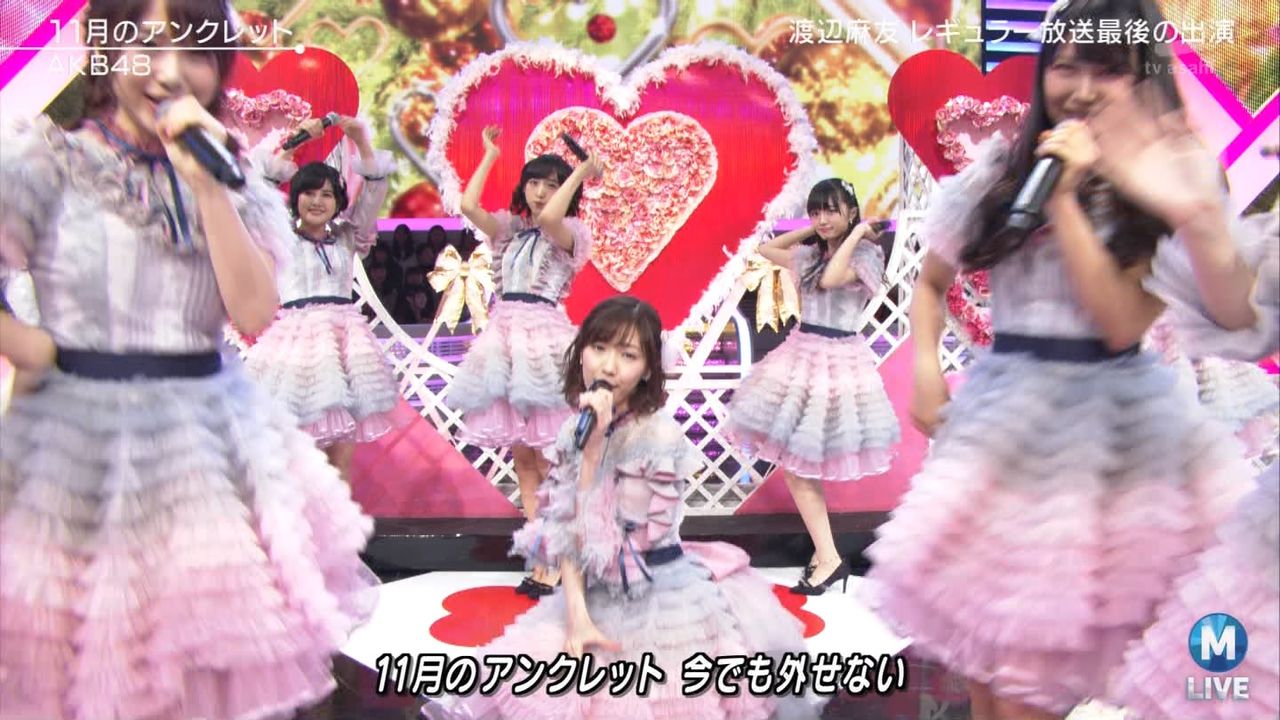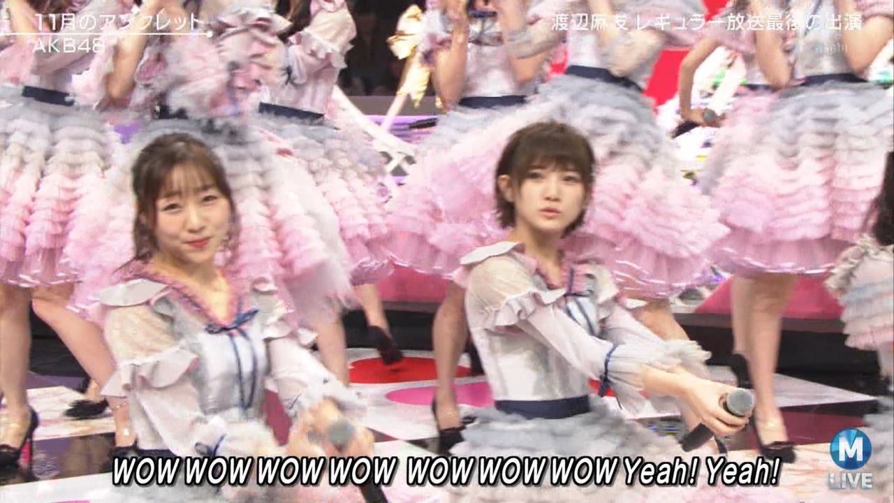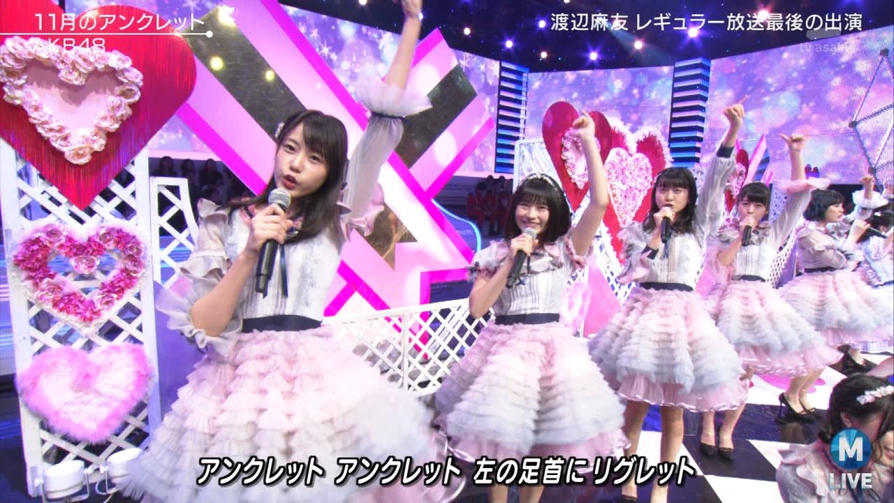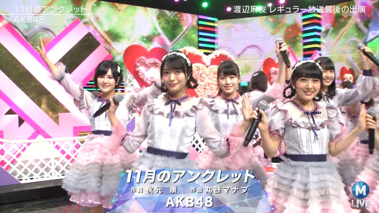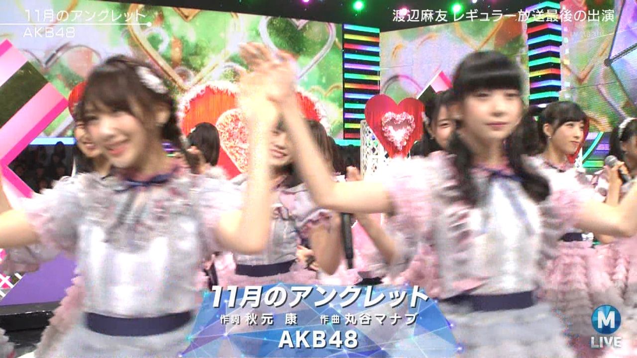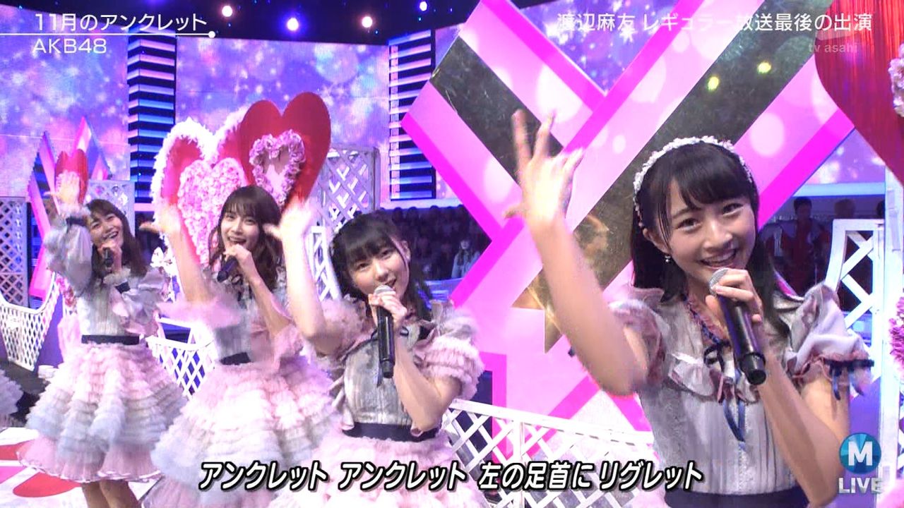 ♪11月のアンクレット 後半#Mステ#渡辺麻友 #柏木由紀 #指原莉乃 #山本彩 #松井珠理奈 #宮脇咲良 #入山杏奈 #岡田奈々 #岡部麟 #小栗有以 #加藤玲奈 #小嶋真子 #高橋朱里#峯岸みなみ #向井地美音 #横山由依 #小畑優奈 #須田亜香里 #白間美瑠 #山本彩加 #吉田朱里 pic.twitter.com/SN7xVCXgau