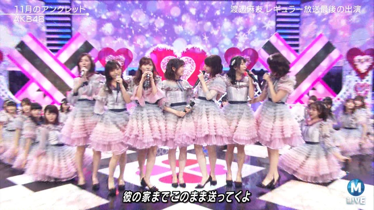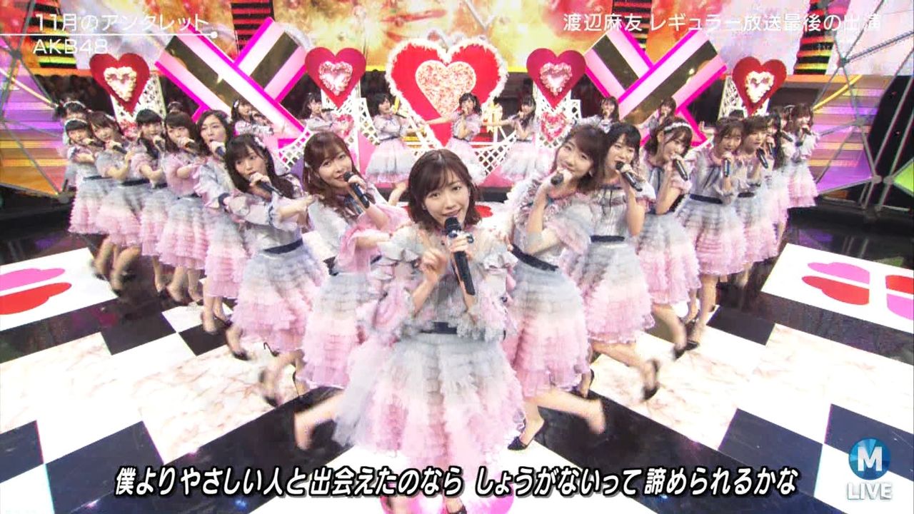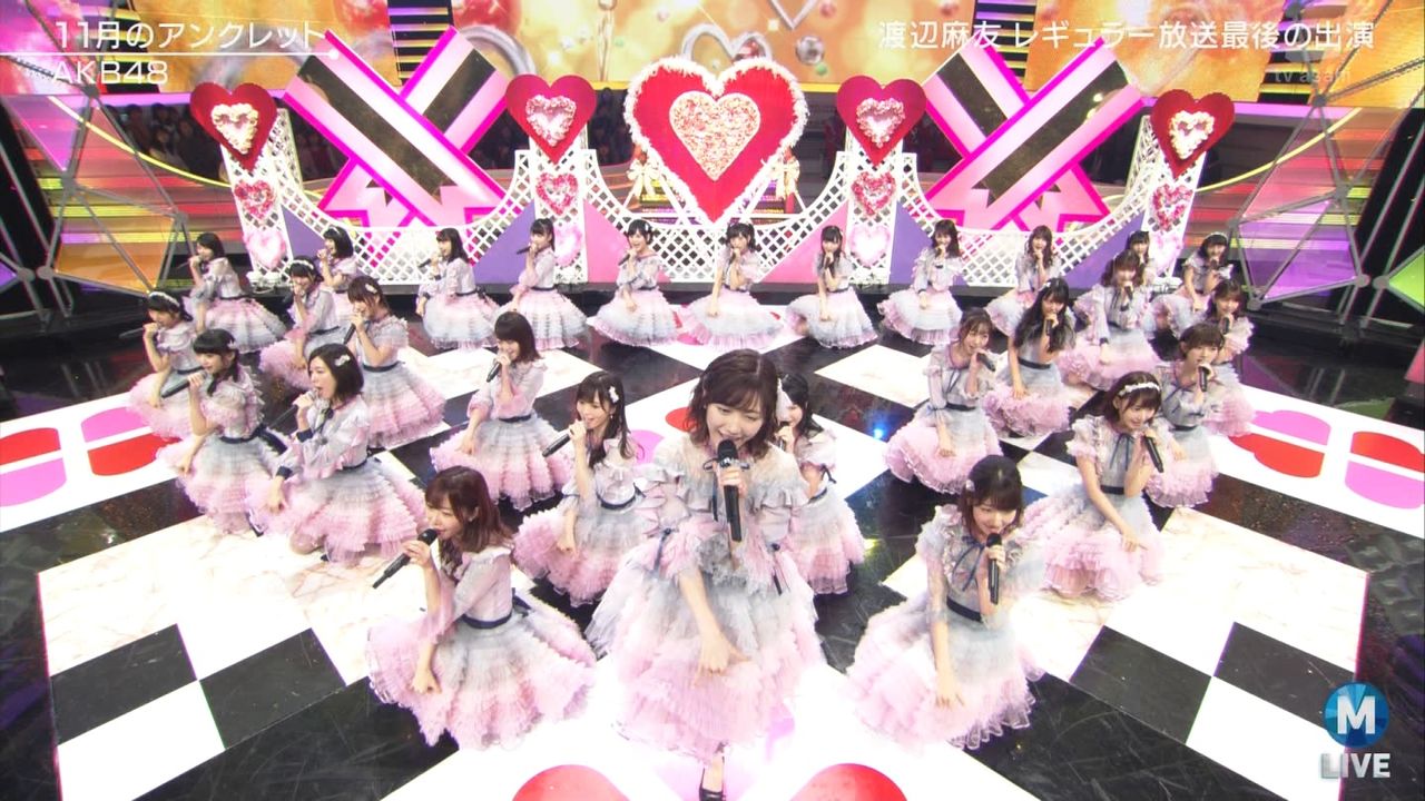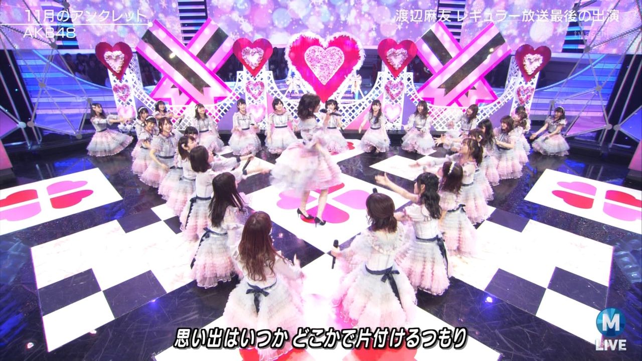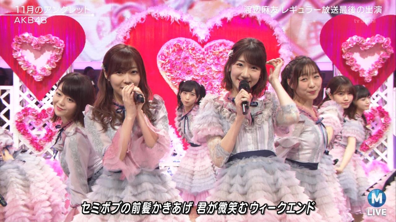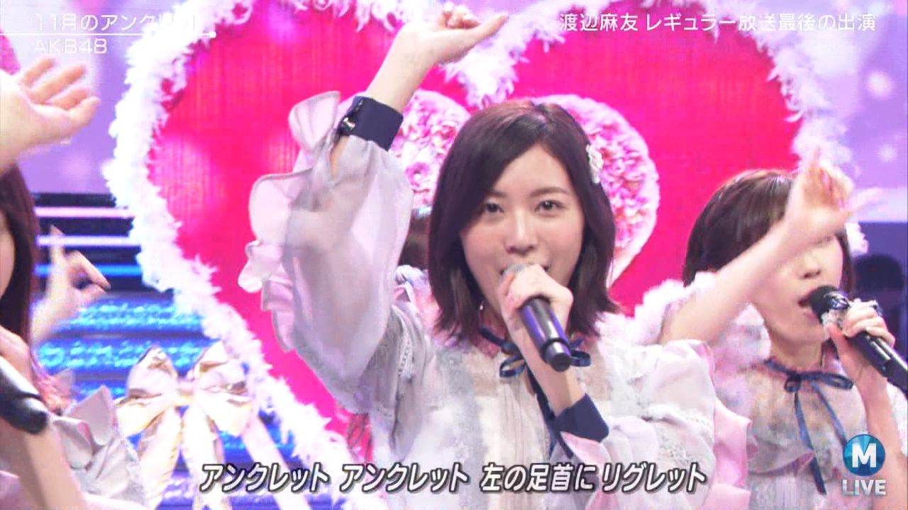 ♪11月のアンクレット 後半#Mステ#渡辺麻友 #柏木由紀 #指原莉乃 #山本彩 #松井珠理奈 #宮脇咲良 #入山杏奈 #岡田奈々 #岡部麟 #小栗有以 #加藤玲奈 #小嶋真子 #高橋朱里#峯岸みなみ #向井地美音 #横山由依 #小畑優奈 #須田亜香里 #白間美瑠 #山本彩加 #吉田朱里 pic.twitter.com/SN7xVCXgau
