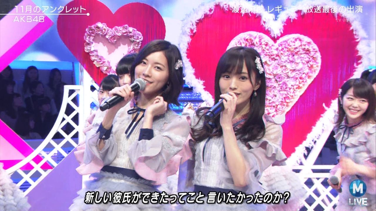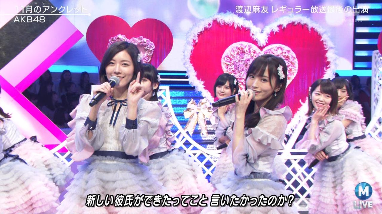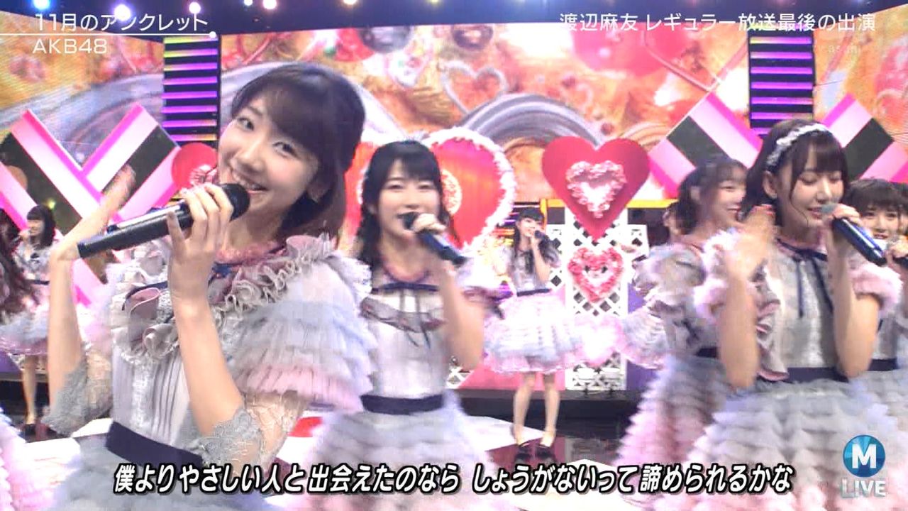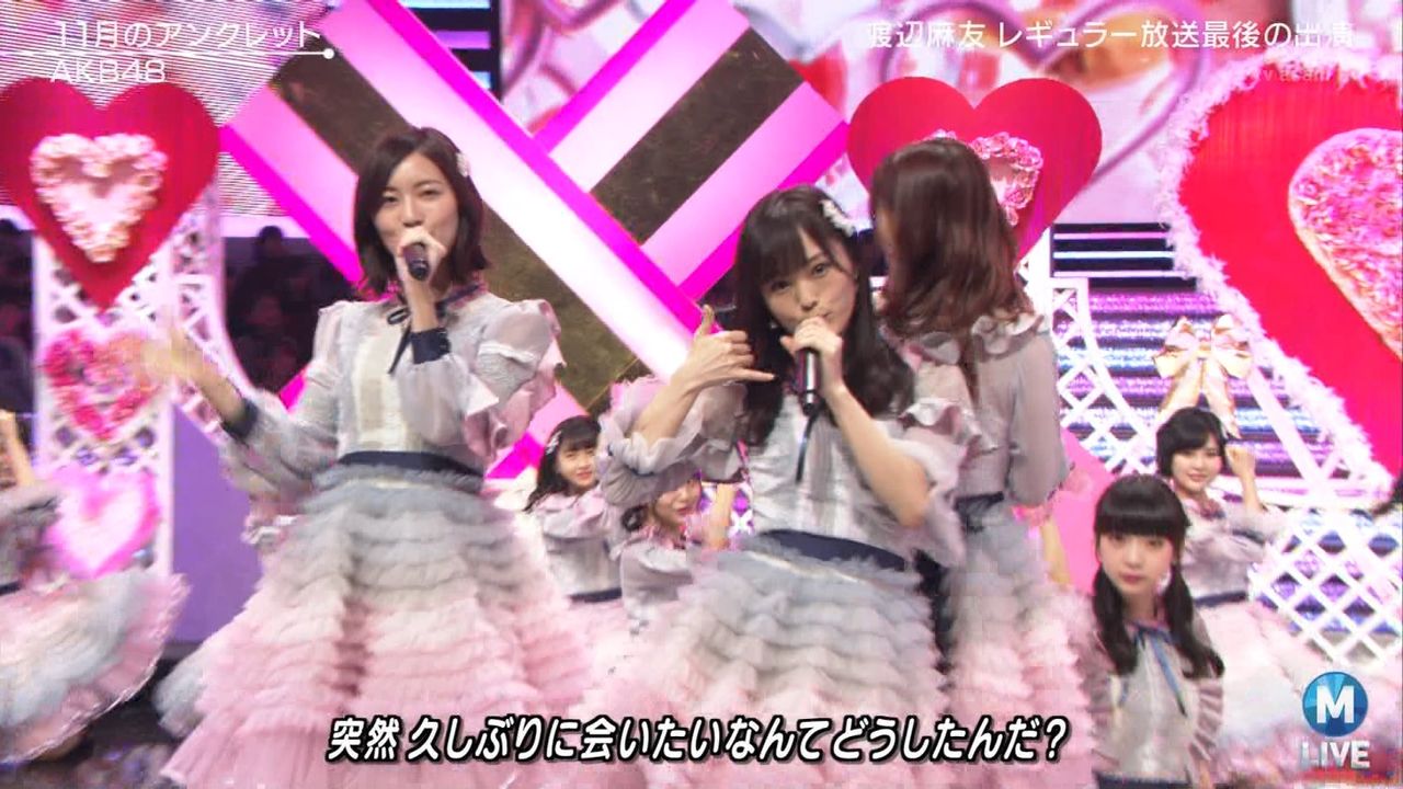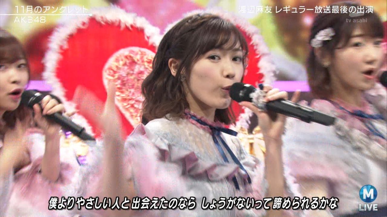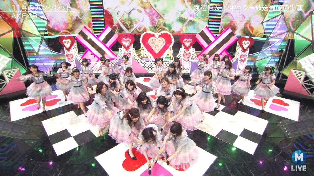 ♪11月のアンクレット 後半#Mステ#渡辺麻友 #柏木由紀 #指原莉乃 #山本彩 #松井珠理奈 #宮脇咲良 #入山杏奈 #岡田奈々 #岡部麟 #小栗有以 #加藤玲奈 #小嶋真子 #高橋朱里#峯岸みなみ #向井地美音 #横山由依 #小畑優奈 #須田亜香里 #白間美瑠 #山本彩加 #吉田朱里 pic.twitter.com/SN7xVCXgau