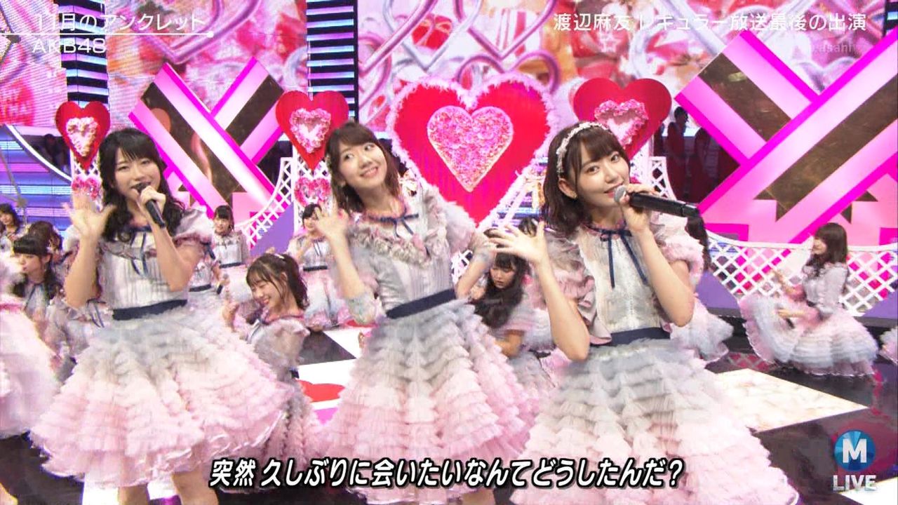 ♪11月のアンクレット 前半#Mステ#渡辺麻友 #柏木由紀 #指原莉乃 #山本彩 #松井珠理奈 #宮脇咲良 #入山杏奈 #岡田奈々 #岡部麟 #小栗有以 #加藤玲奈 #小嶋真子 #高橋朱里#峯岸みなみ #向井地美音 #横山由依 #小畑優奈 #須田亜香里 #白間美瑠 #山本彩加 #吉田朱里 pic.twitter.com/HZJUnbyPvL