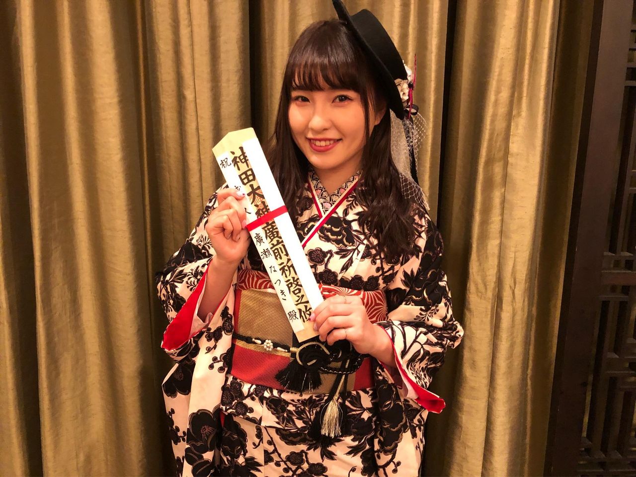 本日 AKB48 メンバーとして 成人式に参加させて頂きました㊗️ハタチ.髪飾りは 帽子で 手作りで作りましたので皆様見てくださーい💕💕髪型も 帽子に合わせて 下ろしたのがこだわり.成人式の写真少しのせていくね✨🦋✨.#handmade#AKB48#成人式#NATSUstagram#廣瀬ンス#ヒロセンス