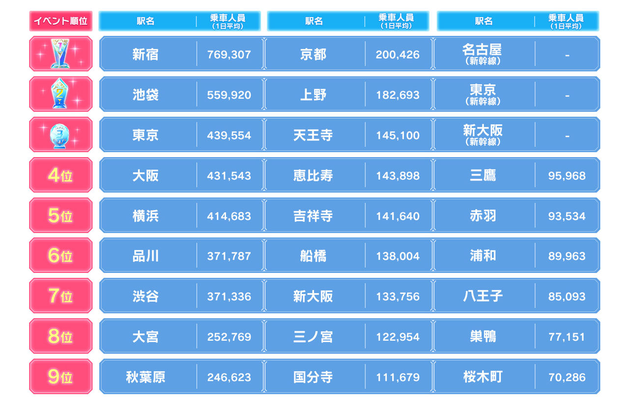 1位 岡田奈々…新宿、京都、名古屋駅新幹線