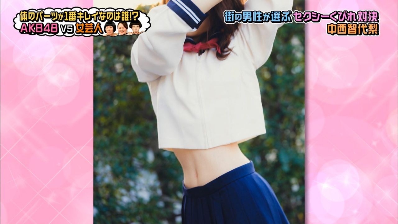 村山彩希続いては第4位に選ばれた中西智代梨さん❗️くびれしか撮らないと伝えているのに、なぜか「顔は恥ずかしい」と言って顔を隠したポージングをとる中西さん🙅♀️そんな恥ずかしがり屋な中西さんの、少しだけ目元が映っているお写真をどうぞ‼️