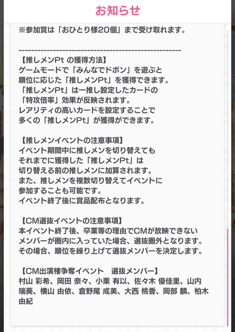 第1回 推しメンイベント 結果発表